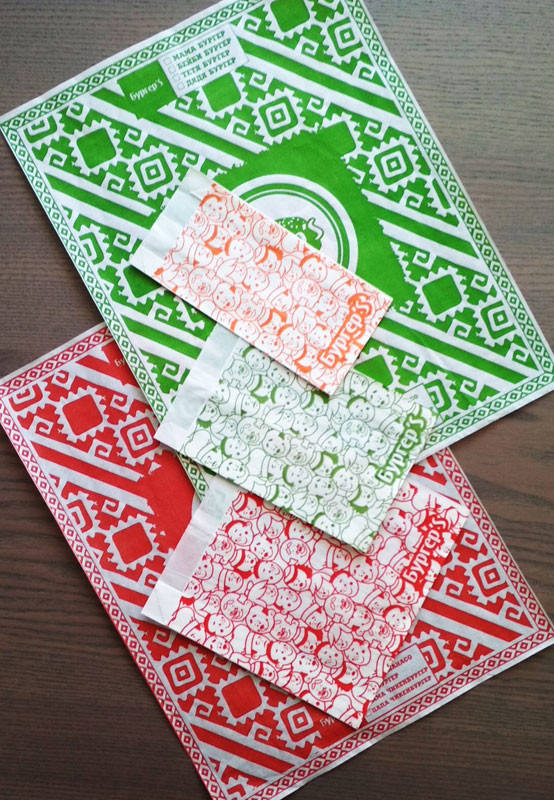 - бургер, шаурму/шаверму, сэндвичи и прочую «быструю еду», упакованную в бумагу, удобно брать одной рукой, переносить и не бояться испачкаться самому или испачкать жиром окружающих, перевозить в салоне автомобиля.